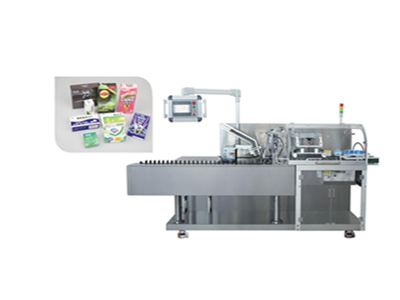 KT-120型卧式自动装盒机是集机电、气、光一体化高科技产品。适用于泡罩成形的胶囊、片剂,外带铝塑包装的泡罩板及类似物品的自动装盒。其工作过程为药板或物品的传送(一次一版占多版可调);药品说明书的传送(可进行1-4折的自动折叠);纸盒自动成形与传送,将药板连带折好的说明书同时装入纸盒内;并自动完成打批号、两端纸舌封口等繁杂的封装过程。该机可遇泡罩包装机连线形成包装流水线(可加热熔胶机)。